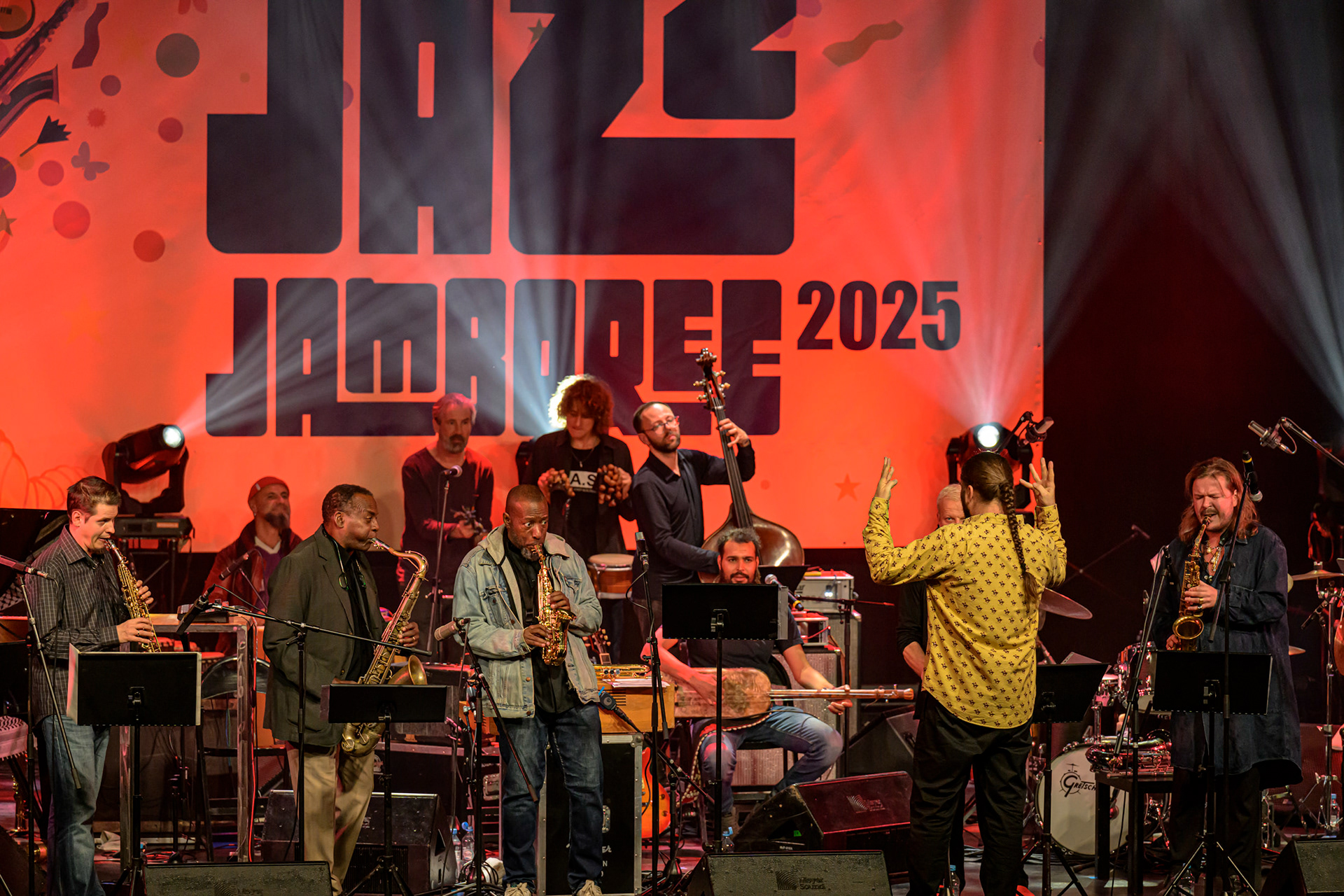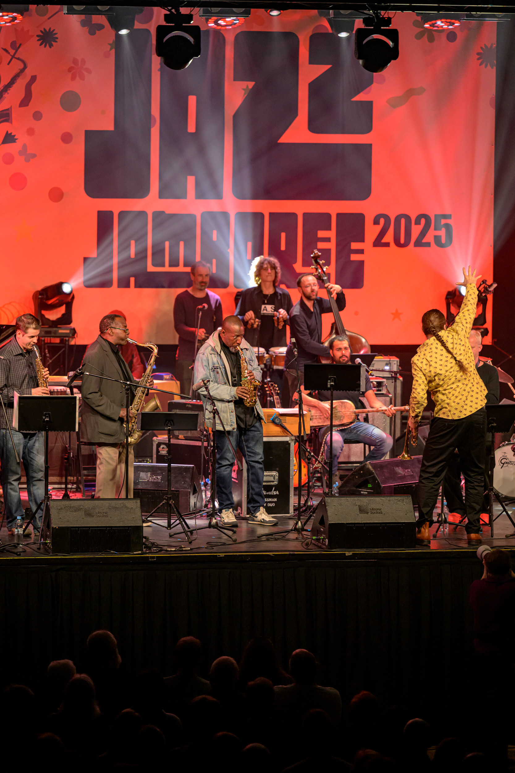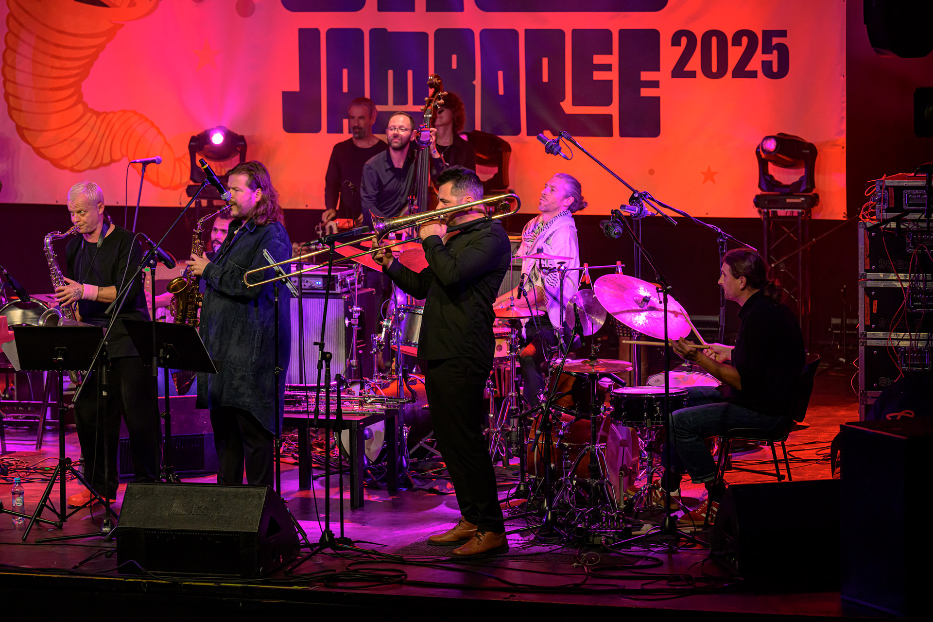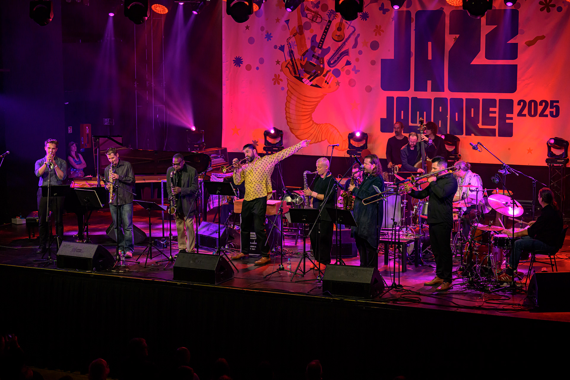 JAZZ JAMBOREE 2025 - DZIEŃ 1 - PIOTRA DAMASIEWICZA Piotr Damasiewicz and Power Of The Horns Ensemble, feat. David Murray & INTO THE ROOTS, feat. Antoine Roney & El Boudani Mus25 października 2025, Klub Stodoła, organizator Adamiak Jazz fot. Andrzej Wasilkiewicz/kaziq.com
