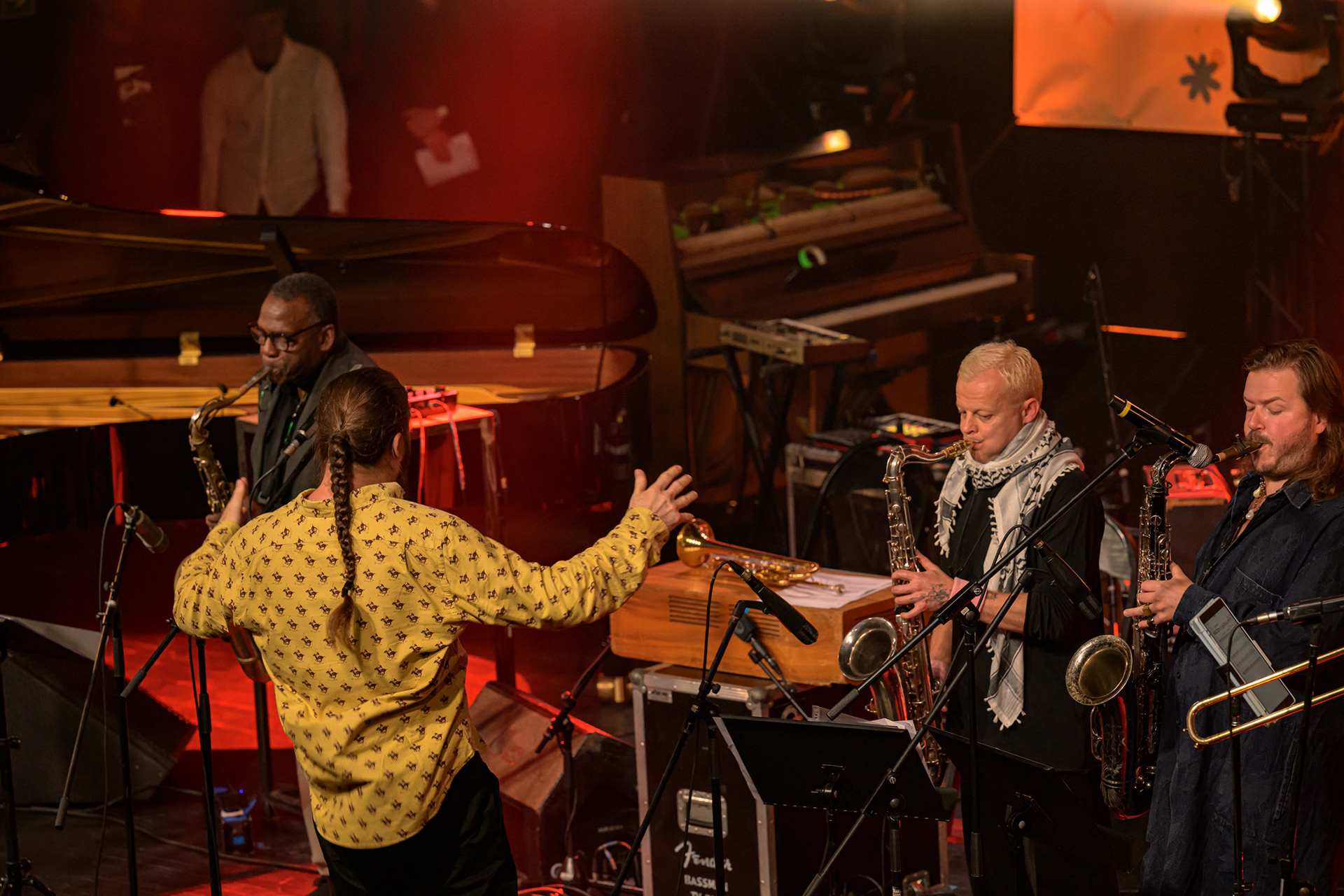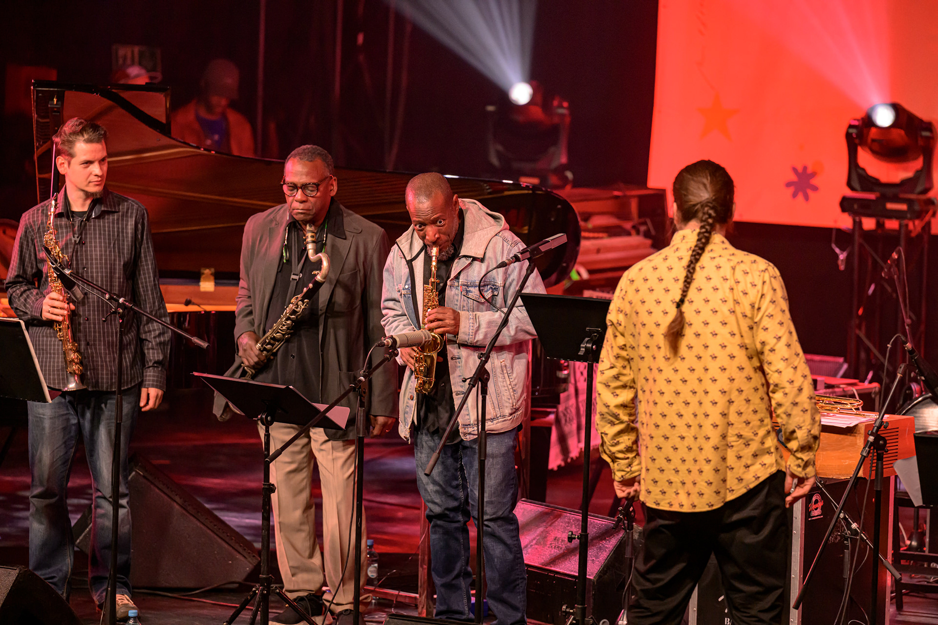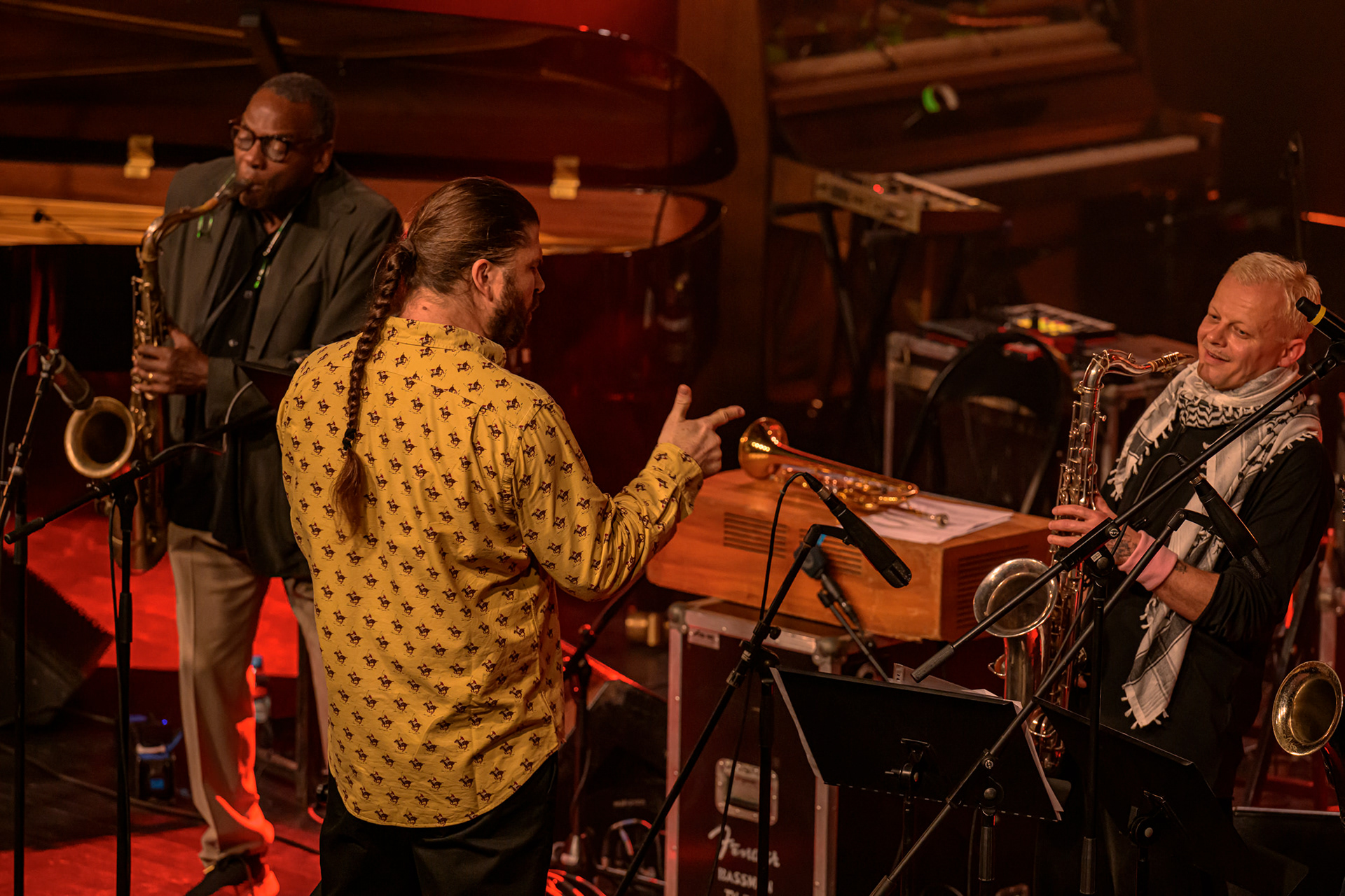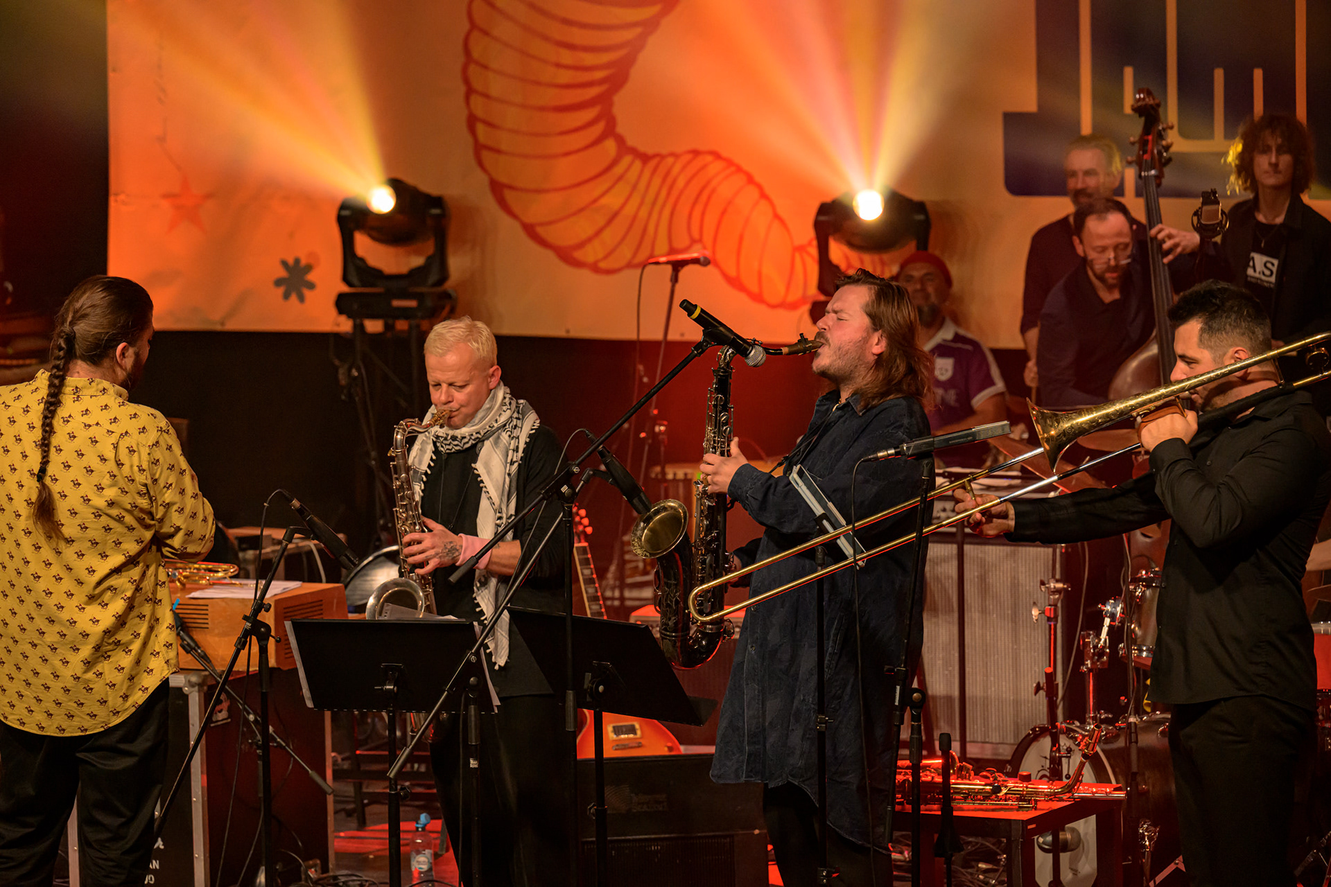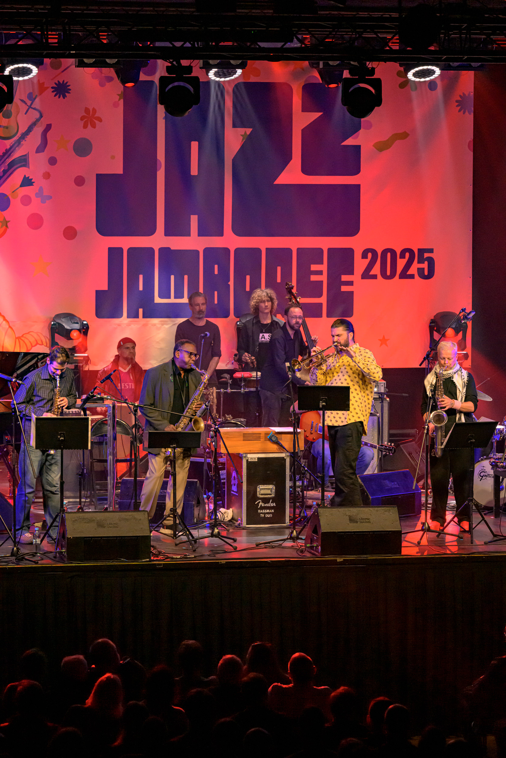 JAZZ JAMBOREE 2025 - DZIEŃ 1 - PIOTRA DAMASIEWICZA Piotr Damasiewicz and Power Of The Horns Ensemble, feat. David Murray & INTO THE ROOTS, feat. Antoine Roney & El Boudani Mus25 października 2025, Klub Stodoła, organizator Adamiak Jazz fot. Andrzej Wasilkiewicz/kaziq.com