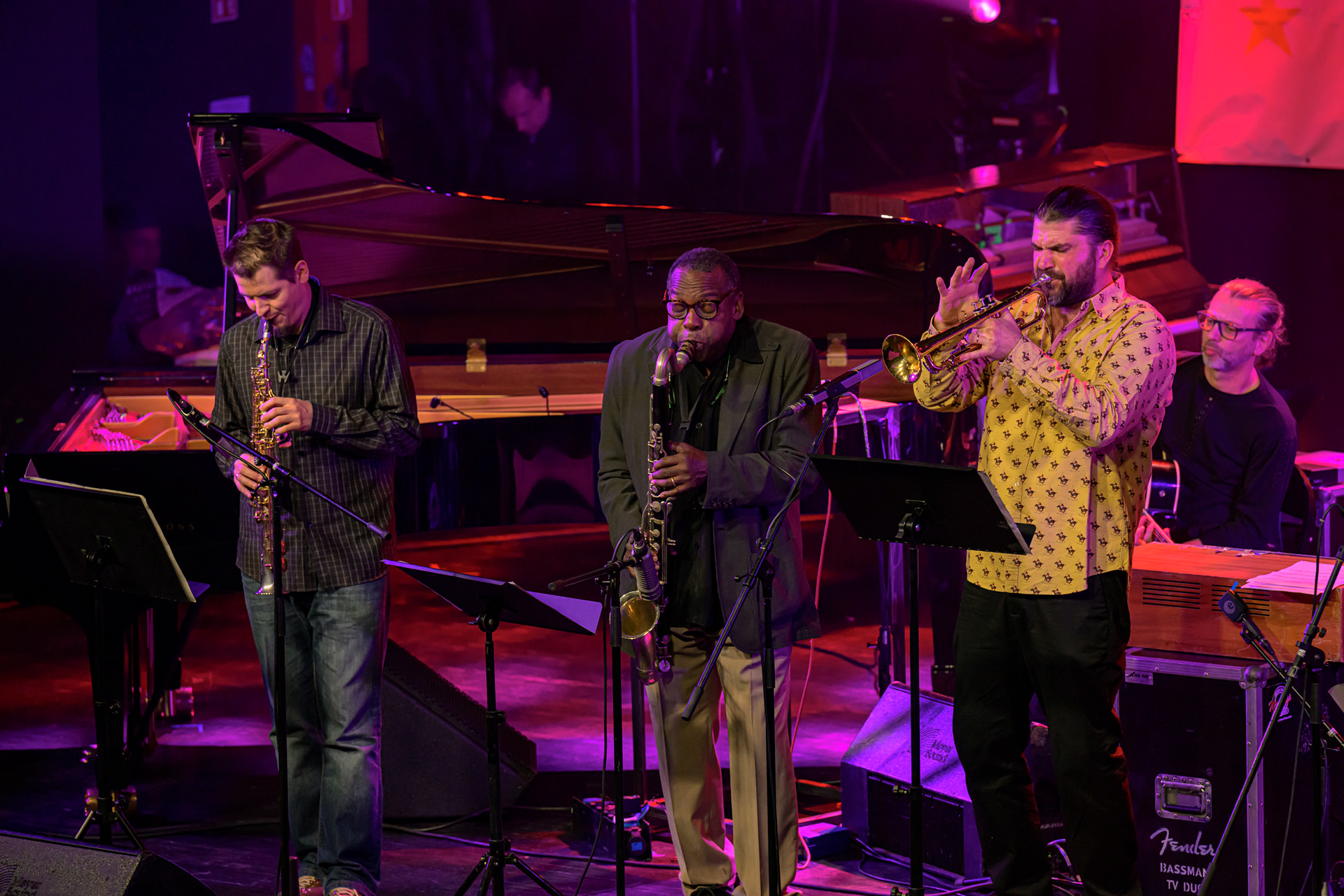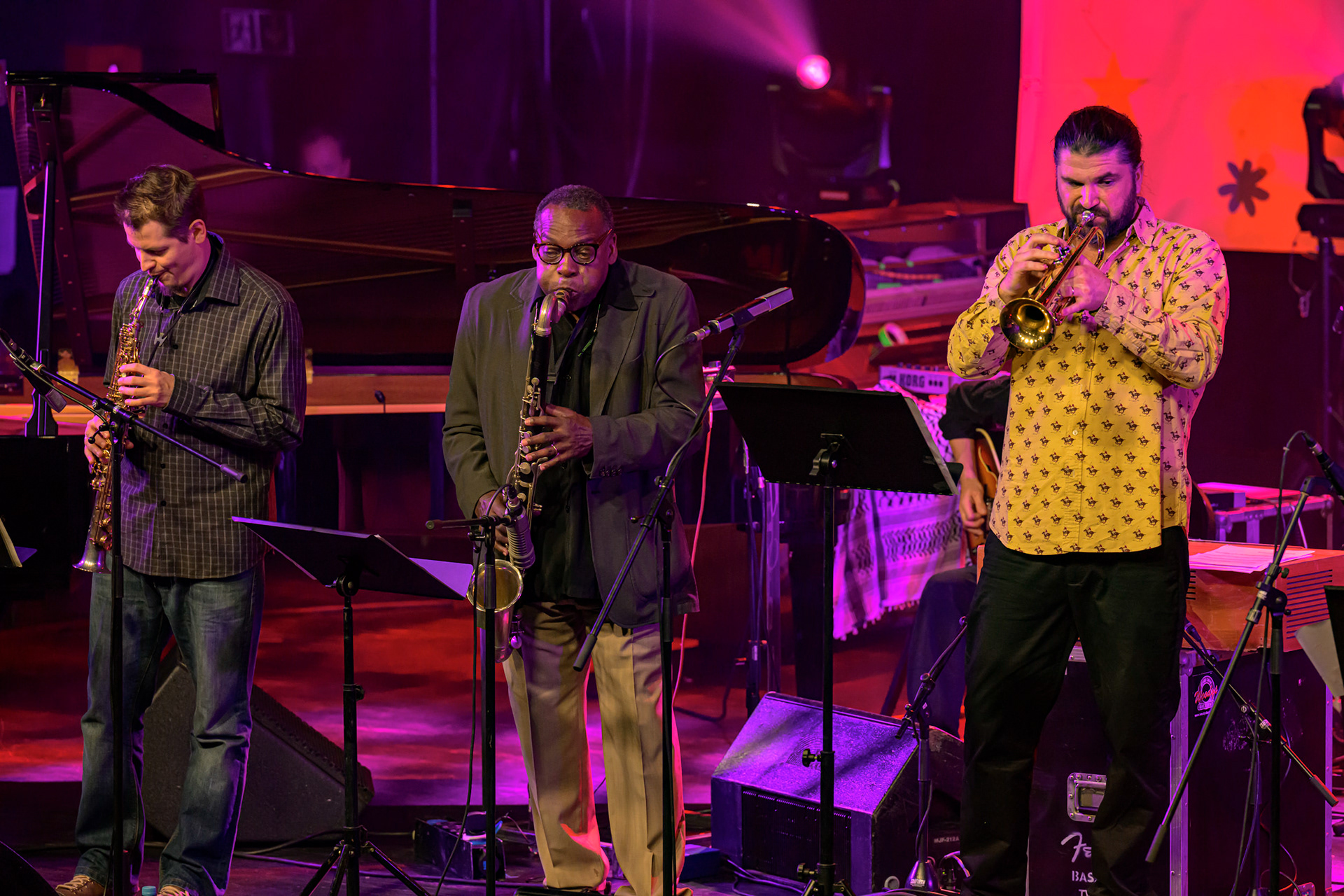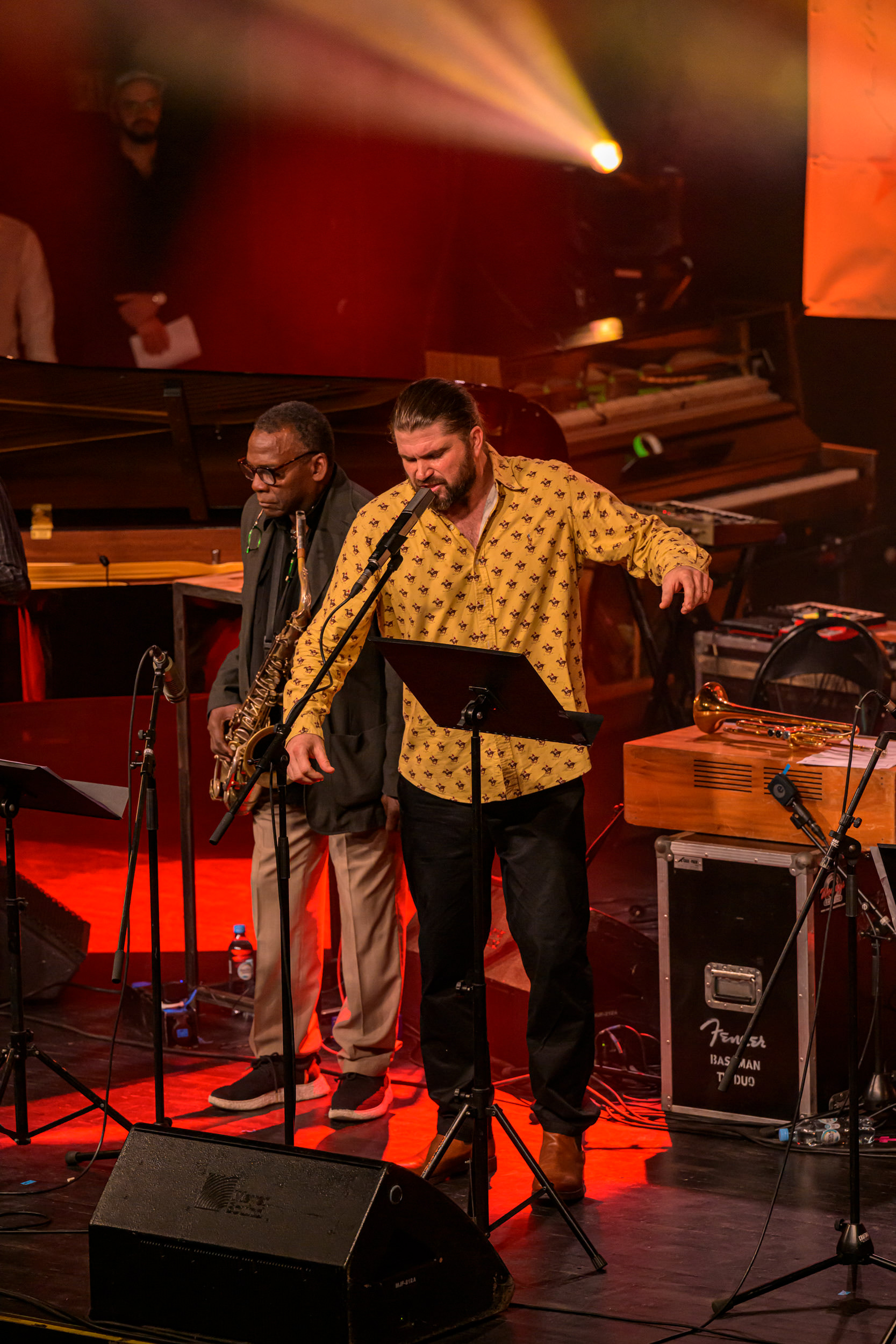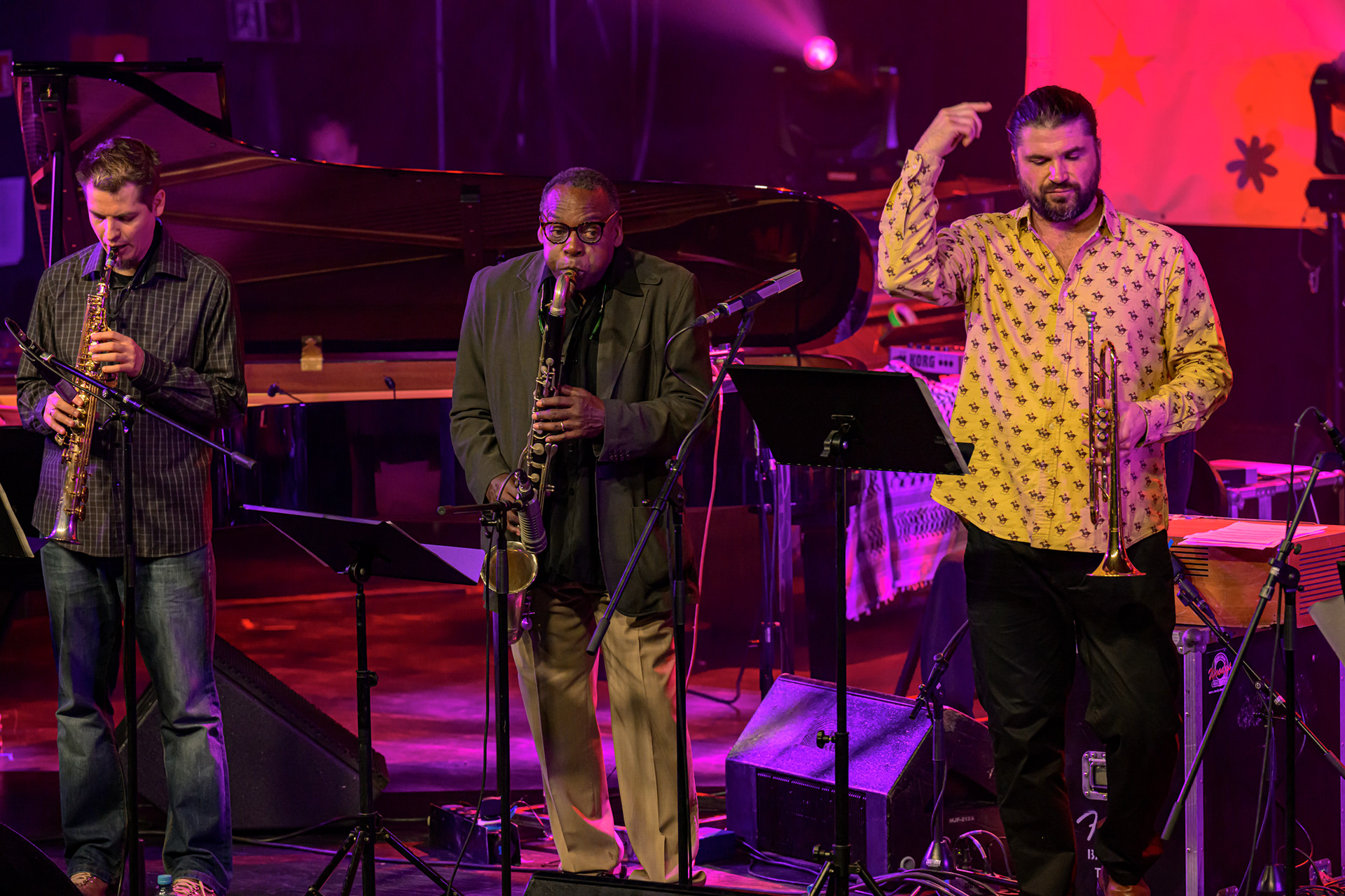 JAZZ JAMBOREE 2025 - DZIEŃ 1 - PIOTRA DAMASIEWICZA Piotr Damasiewicz and Power Of The Horns Ensemble, feat. David Murray & INTO THE ROOTS, feat. Antoine Roney & El Boudani Mus25 października 2025, Klub Stodoła, organizator Adamiak Jazz fot. Andrzej Wasilkiewicz/kaziq.com